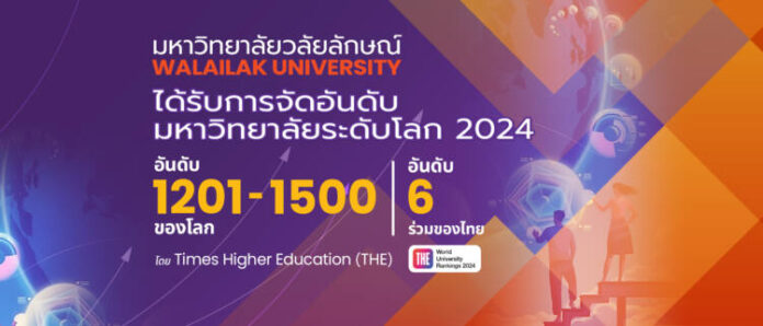 ปลายเดือนกันยายนที่ผ่านมา Times Higher Education(THE) ได้ประกาศผลการจัดอันดับมหาวิทยาลัยโลก World University Rankings 2024 ผ่านเว็บไซต์ https://www.timeshighereducation.com ผลปรากฏว่า มหาวิทยาลัยวลัยลักษณ์ได้รับการจัดอันดับโลกขยับขึ้นมาอยู่ในอันดับที่ 1201-1500 ของโลก จากเดิม 1501+ ในปีที่ผ่านมา โดยมีมหาวิทยาลัยที่เข้ารับการจัดอันดับโลกทั้งหมด 1,904 แห่งทั่วโลก และเป็นอันดับที่ 6 ร่วมของประเทศไทย จากมหาวิทยาลัย 19 แห่งที่ผ่านเงื่อนไขและได้รับการจัดอันดับในปีนี้