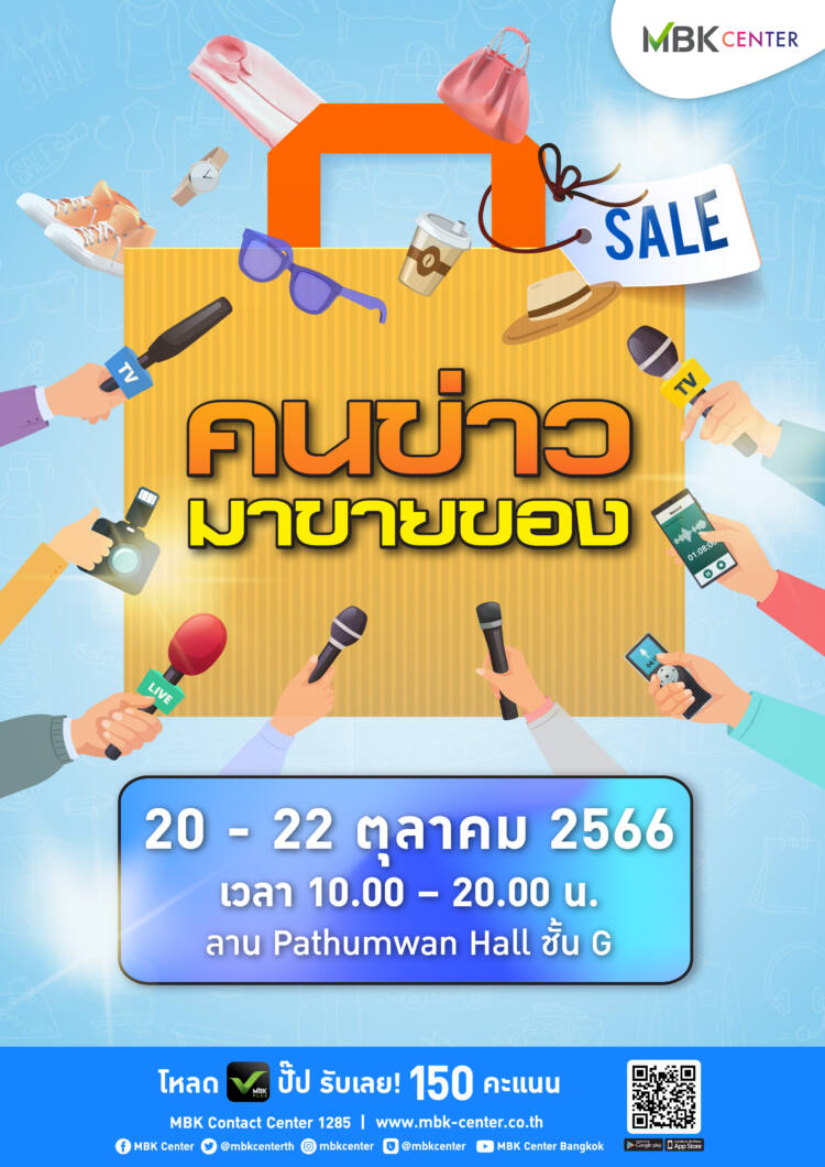 ศูนย์การค้าเอ็ม บี เค เซ็นเตอร์ เปิดพื้นที่แห่งความสุขส่งท้ายปี รวมพลพี่ ๆ น้อง ๆ คนข่าวจากทุกสายทุกโต๊ะข่าว และ อดีตคนข่าว ออกบูธจำหน่ายสินค้าคุณภาพในงาน คนข่าวมาขายของ ระหว่างวันศุกร์ที่ 20 – วันอาทิตย์ที่ 22 ตุลาคม 2566 ตั้งแต่เวลา 10.00 น. – 20.00 น. บริเวณลานกิจกรรมปทุมวัน ฮอลล์ ชั้น G