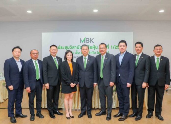 บริษัท เอ็ม บี เค จำกัด (มหาชน) ได้จัดการประชุมวิสามัญผู้ถือหุ้น ครั้งที่ 1/2566 ในรูปแบบการจัดประชุมผ่านสื่ออิเล็กทรอนิกส์ (E-AGM) โดยมี นายบันเทิง ตันติวิท ประธานกรรมการ และ นายศุภเดช พูนพิพัฒน์ รองประธานกรรมการ ประชุมออนไลน์ พร้อมด้วยนายสุเวทย์ ธีรวชิรกุล รองประธานกรรมการบริหาร (ที่ 5 จากซ้าย) นายวิจักษณ์ ประดิษฐวณิช ประธานเจ้าหน้าที่บริหารและกรรมการผู้อำนวยการ (ที่ 6 จากซ้าย) รวมถึงคณะกรรมการ คณะผู้บริหาร และผู้สอบบัญชีอิสระ เข้าร่วมประชุมที่บริษัทและผ่านช่องทางออนไลน์ ณ ห้องสัมมนา อาคารเอ็ม บี เค เซ็นเตอร์ ชั้น 8 เมื่อเร็ว ๆ นี้