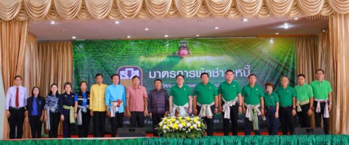 ซึ่ง ธ.ก.ส.เปิดให้บริการตรวจสอบสิทธิ์และแจ้งความประสงค์เข้าร่วมมาตรการผ่านแอปพลิเคชัน “BAAC Mobile” ตั้งแต่วันที่ 1 ตุลาคม2566 – 31 มกราคม 2567 โดยติดตามขั้นตอนการปฏิบัติงาน ทั้งการตรวจสอบสิทธิ์ การตรวจสุขภาพหนี้การทำเอกสารข้อตกลงต่อท้ายสัญญา และการฟื้นฟูศักยภาพในการประกอบอาชีพ ภายใต้หลักการ “ตลาดนำ นวัตกรรมเสริมเพิ่มรายได้” พร้อมเติมสินเชื่อเสริมสภาพคล่องในการประกอบอาชีพ วงเงินไม่เกิน 100,000 บาทเพื่อส่งเสริมให้เกษตรกรมีรายได้เพิ่มขึ้นในระหว่างการพักชำระหนี้และป้องกันการก่อหนี้นอกระบบโดยมีคณะผู้บริหารและพนักงาน ธ.ก.ส. ในพื้นที่และเกษตรกรลูกค้า เข้าร่วมกิจกรรมกว่า 2,500 คน ณ อำเภอวาปีปทุม อำเภอเมืองมหาสารคาม อำเภอกันทรวิชัย อำเภอเชียงยืน และอำเภอโกสุมพิสัย จังหวัดมหาสารคาม เมื่อวันที่ 5 พฤศจิกายน2566