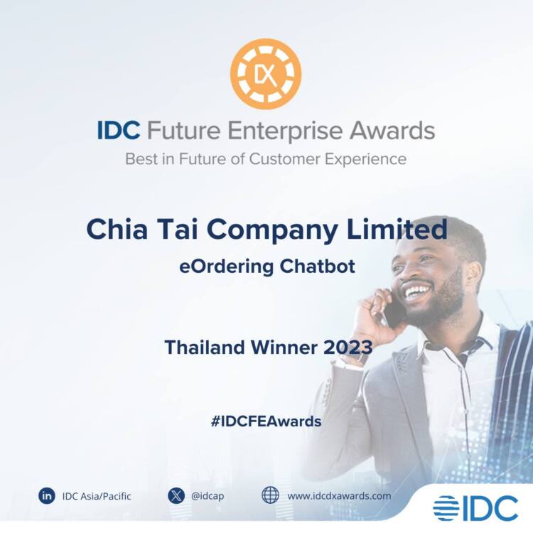 จากการที่องค์กรมีความโดดเด่นด้านการนำเทคโนโลยีมาปรับใช้เพื่อสร้างประสบการณ์ที่ดีที่สุดให้แก่ลูกค้าคนสำคัญของเรา ซึ่งรางวัลนี้ถือเป็นการสะท้อนและตอกย้ำความมุ่งมั่นของเจียไต๋ที่ต้องการส่งมอบนวัตกรรมการเกษตรด้วยผลิตภัณฑ์และบริการที่มีคุณภาพสูงสุดโดยแอปพลิเคชั่น eOrdering นี้