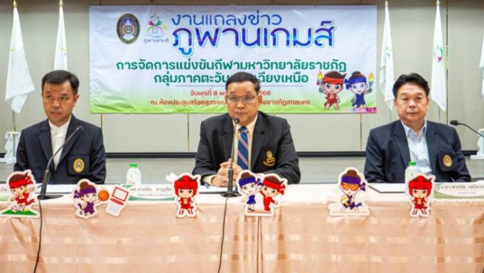 (8 พ.ย.66) เวลา 13.30 น. ผู้ช่วยศาสตราจารย์ ชาคริต ชาญชิตปรีชา รักษาราชการแทนอธิการบดีมหาวิทยาลัยราชภัฏสกลนคร เป็นประธานในการแถลงข่าว และประชุมจับสลากแบ่งสายการแข่งขันกีฬานักศึกษามหาวิทยาลัยราชภัฏกลุ่มภาคตะวันออกเฉียงเหนือ ครั้งที่ 43 และการแข่งขันกีฬาอาจารย์และบุคลากรมหาวิทยาลัยราชภัฏกลุ่มภาคตะวันออกเฉียงเหนือ ครั้งที่ 52 “ภูพานเกมส์” ณ ห้องประชุมสร้อยสุวรรณา ชั้น 3 อาคาร 10 มหาวิทยาลัยราชภัฏสกลนคร อำเภอเมืองสกลนคร จังหวัดสกลนคร
