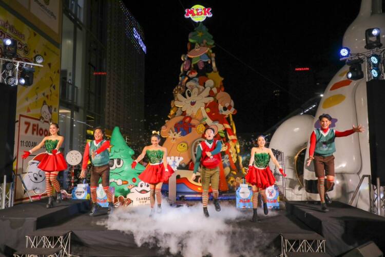 สำหรับ ศูนย์การค้าเอ็ม บี เค เซ็นเตอร์ แลนด์มาร์คชมไฟต้นคริสต์มาสใจกลางกรุงเทพฯ ที่คนไทยและนักท่องเที่ยวต่างชาตินิยมมาถ่ายรูปเช็คอิน ในปีนี้ต้นคริสต์มาส MBK Sparkling Happiness X Sahred Toy ยกขบวนความน่ารักของเหล่าการ์ตูนคาแรคเตอร์สีสันสดใสที่มีความสนุกสนานขี้เล่น ประดับประดาบนต้นคริสต์มาสที่มีความสูง 9 เมตร ลำต้นโดดเด่นด้วยซานต้ายักษ์ที่ในมือยื่นกล่องของขวัญเป็นตัวแทนส่งต่อความสุขให้กับผู้มาชม พร้อมผองเพื่อนที่มาเติมเต็มความสนุกสุดหรรษา ทั้งกวางเรนเดียร์ ไม้เท้าแคนดี้ กระดิ่งสีทอง รวมถึงประติมากรรม Makrub (มาครับ) ไอคอนของ เอ็ม บี เค เซ็นเตอร์ ที่ตั้งตระหง่านอยู่หน้าศูนย์ฯเป็นจุดยอดนิยมเช็คอินของนักท่องเที่ยวที่มาเยือนก็เป็นอีกไฮไลท์ประดับอยู่บนต้นคริสต์มาสด้วยคาแรคเตอร์น่ารัก คูล ๆ และตระการตากับว่าวจุฬา เสาชิงช้า รถตุ๊กตุ๊ก ยักษ์ทวารบาล รถไฟฟ้า BTS ซานต้าขับรถตุ๊กตุ๊ก แท็กซี่ ซึ่งเป็นการนำเอกลักษณ์ความเป็นไทยมาร่วมรังสรรค์ต้นคริสต์มาสที่แปลกใหม่ไม่ซ้ำใคร นับเป็นความโดดเด่นของต้นคริสต์มาส MBK Center ซึ่งทุกปีจะมอบประสบการณ์แปลกใหม่ให้ผู้มาชมต้นคริสต์มาสได้ตื่นตาตื่นใจกับไอเดียการผสมผสานอย่างกลมกล่อมลงตัวของวัฒนธรรมตะวันตกและตะวันออก