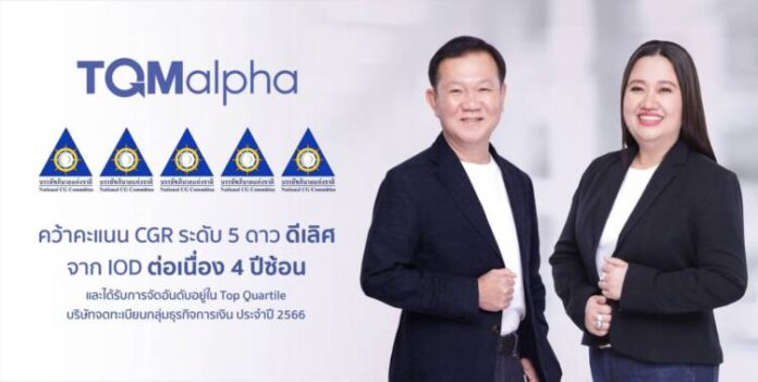 บริษัท ทีคิวเอ็ม อัลฟา จำกัด (มหาชน) หรือ TQMalpha ได้รับคะแนนการประเมินการกำกับดูแลกิจการในระดับ 5 ดาว หรือ “ดีเลิศ” (Excellent CG Scoring) ต่อเนื่องเป็นปีที่ 4 จากสมาคมส่งเสริมสถาบันกรรมการบริษัทไทย (IOD) โดยการสนับสนุนจากตลาดหลักทรัพย์แห่งประเทศไทย (SET)ซึ่งได้ดำเนินการสำรวจการกำกับดูแลกิจการของบริษัทจดทะเบียนไทย ประจำปี 2566 (Corporate Governance Report of Thai Listed Companies 2023 : CGR) ซึ่งมีบริษัทจดทะเบียนเข้าร่วมการประเมินทั้งสิ้น 782 บริษัท