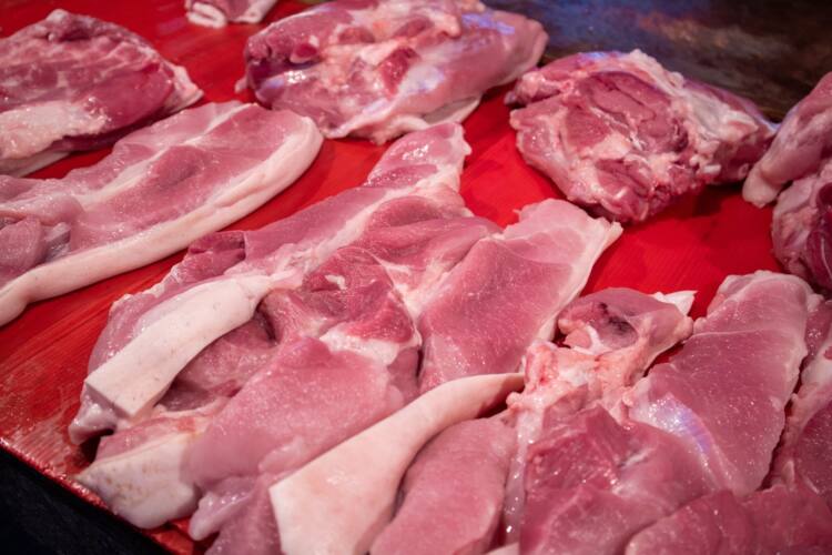2. สังเกตที่เนื้อสัตว์ ความสดให้ดูที่สี เนื้อหมูที่ดี มีโครงสร้างใช้นิ้วกดเนื้อจะแน่น ไม่มีรอยบุ๋ม สีไม่ซีดจนเกินไปหรือเขียวคล้ำ มีสีแดงสดตามธรรมชาติ ไม่แดงจนเกินไป เพราะอาจมีการใส่สารเร่งสี และไม่มีลักษณะของการฉ่ำน้ำ และไม่มีกลิ่นที่ผิดปกติ