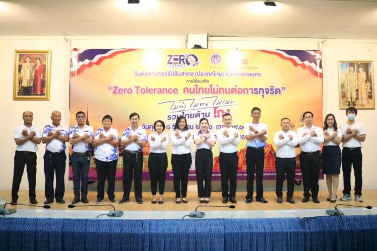 8 ธันวาคม 2566 ที่ห้องพระธาตุเชิงชุม ชั้น 4 ศาลากลางจังหวัดสกลนคร นางรณิดา เหลืองฐิติสกุล รอง ผวจ.สกลนคร เป็นประธานเนื่องในงานวันต่อต้านคอร์รัปชันสากล (ประเทศไทย) จังหวัดสกลนคร ภายใต้แนวคิด “Zero Tolerance ไม่ทนต่อการทุจริต” โดยมีหัวหน้าส่วนราชการ หัวหน้าหน่วยงาน นายอำเภอ นายก อบจ.สกลนคร นายกเทศมนตรีนครสกลนคร ผู้บริหารสถานศึกษา ผู้บริหารองค์กรภาคเอกชน และประชาชนเข้าร่วมอย่างพร้อมเพรียง นางรณิดา เหลืองฐิติสกุล รอง ผวจ.สกลนคร นางสาวมญชุ์ญาณิศ พงศ์เพชรดิถ ผู้อำนวยการสำนักงาน ป.ป.ช. ประจำจังหวัดสกลนคร กล่าวเชิญชวนทุกภาคส่วนต่อต้านการทุจริตคอร์รัปชันว่า งานวันต่อต้านคอร์รัปชันสากล(ประเทศไทย) จังหวัดสกลนคร ในวันนี้ ด้วยรัฐบาลร่วมกับภาคีเครือข่าย ได้ประสานความร่วมมือกับสำนักงาน ป.ป.ช. และสำนักงาน ป.ป.ท. ซึ่งเป็นองค์กรอิสระ ที่ปฏิบัติภารกิจหลักในการป้องกันและปราบปรามการทุจริต เพื่อขับเคลื่อนแผนแม่บทภายใต้ยุทธศาสตร์ชาติประเด็นการต่อต้านการทุจริตและประพฤติมิชอบ ผ่านกลไกต่างๆ และได้กำหนดจัดงานวันต่อต้านคอร์รัปชันสากล (ประเทศไทย) ในวันที่ 9 ธันวาคม ของทุกปี