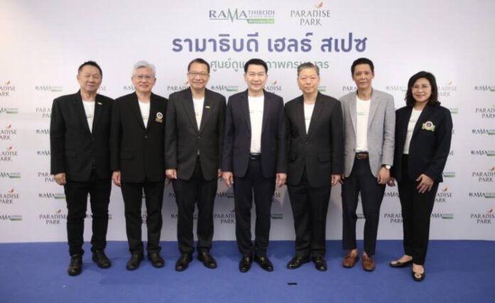 โรงพยาบาลรามาธิบดี ร่วมกับ พาราไดซ์ พาร์ค ศูนย์การค้าในเครือเอ็ม บี เค เปิด Ramathibodi Health Space@Paradise Park ศูนย์ดูแลสุขภาพครบวงจรนอกพื้นที่โรงพยาบาล ด้วยคอนเซปต์ “สร้างเสริมป้องกัน ดูแลรักษา บำบัดฟื้นฟู” เพื่อประชาชนพื้นที่ศรีนครินทร์และพื้นที่ใกล้เคียงได้เข้าถึงบริการทางสุขภาพที่สะดวก รวดเร็ว มากยิ่งขึ้น ภายในงานได้รับเกียรติจาก นายสุเวทย์ ธีรวชิรกุล รองประธานกรรมการบริหาร (ที่ 5 จากซ้าย) นายวิจักษณ์ ประดิษฐวณิช ประธานเจ้าหน้าที่บริหารและกรรมการผู้อำนวยการ (ที่ 3 จากซ้าย) บริษัท เอ็ม บี เค จำกัด (มหาชน) พร้อมด้วย ศาสตราจารย์ นายแพทย์ปิยะมิตร ศรีธรา คณบดีคณะแพทยศาสตร์โรงพยาบาลรามาธิบดี มหาวิทยาลัยมหิดล (ที่ 4 จากซ้าย) รองศาสตราจารย์ นายแพทย์สุรศักดิ์ ลีลาอุดมลิปิ ผู้อำนวยการโรงพยาบาลรามาธิบดี (ที่ 2 จากซ้าย) ร่วมเปิดงาน Grand Opening Ramathibodi Health Space@Paradise Park อย่างป็นทางการ ณ บริเวณ ชั้น 3 ศูนย์การค้าพาราไดซ์ พาร์ค เมื่อเร็ว ๆ นี้