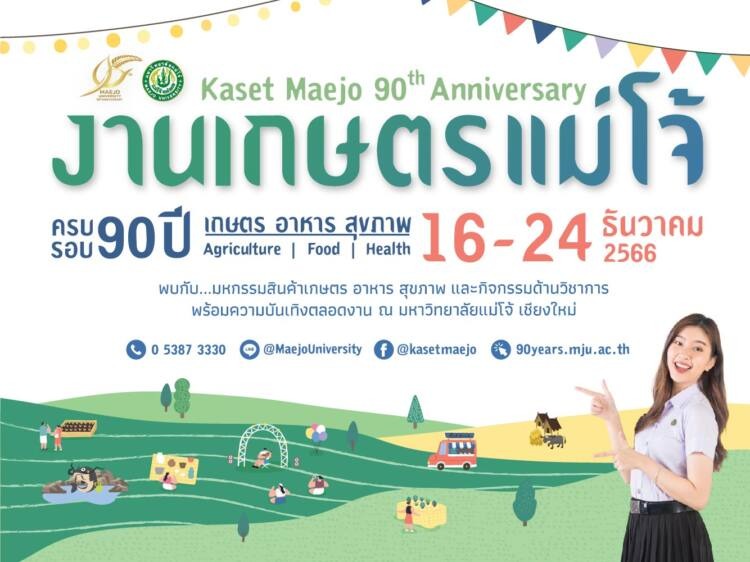 ม.แม่โจ้ ฉลองครบ 90 ปี จัดใหญ่”งานเกษตรแม่โจ้ 90 ปี” มุ่งเน้น 3 เรื่อง เกษตร อาหารและด้านสุขภาพ พร้อมพลิกโฉมสู่การเป็นมหาวิทยาลัยพัฒนาเทคโนโลยีและส่งเสริมการสร้างนวัตกรรมตามยุทธศาสตร์ แม่โจ้ 100 ปี
