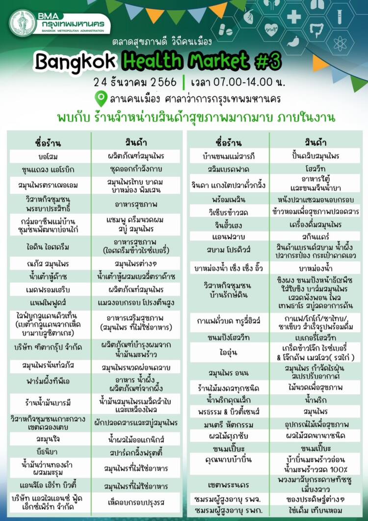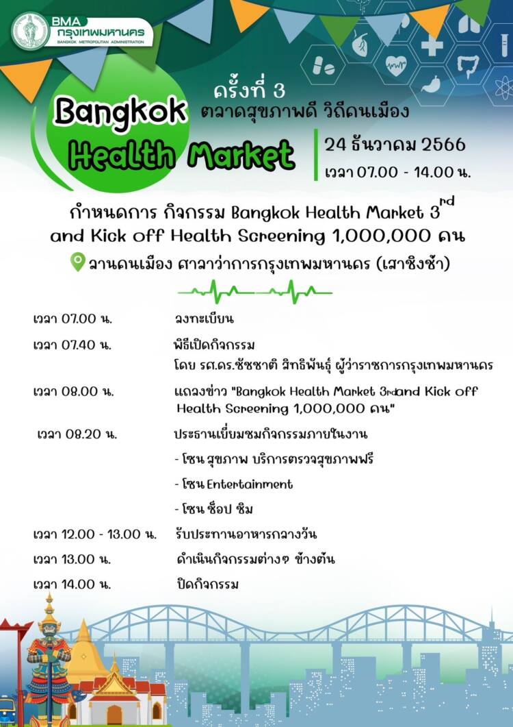 รศ.ดร.ชัชชาติ สิทธิพันธุ์ ผู้ว่าราชการกรุงเทพมหานคร เป็นประธานในพิธีเปิดโครงการ Bangkok Health Market ครั้งที่ 3 and Kick off Health Screening 1,000,000 คน วันที่ 24 ธันวาคม 2566 เวลา