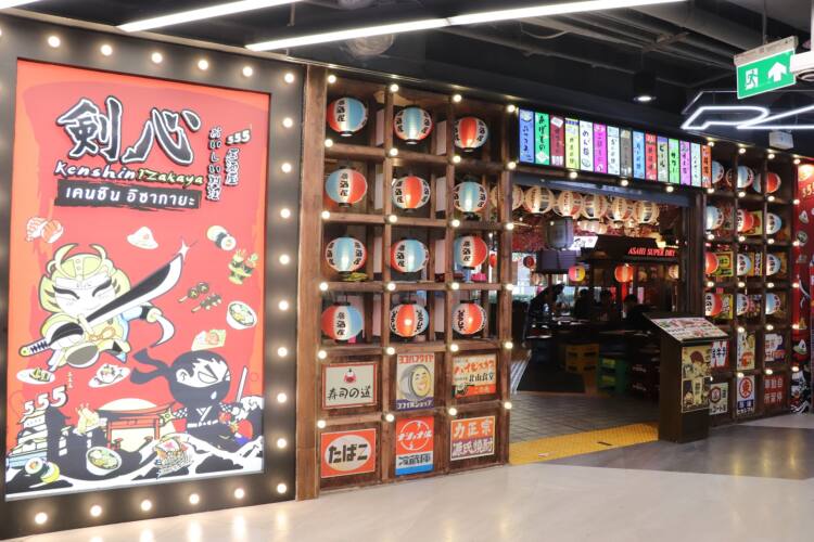 อีกร้านกินดื่มสไตล์ญี่ปุ่น ขอแนะนำ Kenshin Izakaya ตกแต่งในธีมสนุก ๆ บรรยากาศอิซากายะแบบญี่ปุ่นและรถยาไตข้างถนน ร้านอยู่ชั้น 2 โซน B เปิดให้บริการตั้งแต่ 11.00 น. – 24.00 น. เมนูไฮไลท์แนะนำ Aburi Shime Saba ปลาซาบะดองเผาไฟ Teppanyaki Gyuniku เนื้อวัวลูกเต๋าผัดโชยุเทปันยากิ Sukiyaki Gyu/Buta หม้อไฟสุกียากี้ญี่ปุ่น และ Special Steak Gyudon ข้าวหน้าเนื้อย่างพิเศษ เป็นต้น พร้อมต้อนรับแก๊งเพื่อน และ ครอบครัว ฉลองช่วงเวลาดี ๆ ร่วมกัน