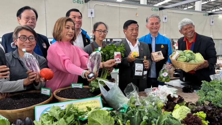 เมื่อเวลา 09.30 น.วันที่ 14 ก.พ. 66 ที่ตลาดกลางเกษตรอินทรีย์ท้ายเกาะ (ตลาดโรงเกลือท้ายเกาะ) ถนนปทุมธานี-เสนา ต.ท้ายเกาะ อ.สามโคก จ.ปทุมธานี นายอลงกรณ์ พลบุตร ที่ปรึกษารัฐมนตรีว่าการกระทรวงเกษตรและสหกรณ์ และประธานคณะอนุกรรมการขับเคลื่อนเกษตรกรรมยั่งยืน เดินทางมาเยี่ยมชมโครงการตลาดกลางเกษตรอินทรีย์ท้ายเกาะและปาฐกถาพิเศษ “ยุทธศาสตร์การขับเคลื่อนระบบเกษตรกรรมยั่งยืนของประเทศไทย” โดยมีดร.อนุรักษ์ เรืองรอบ นายกสมาคมการค้าเกษตรกรรมยั่งยืนไทย รองประธานสภาเกษตรอินทรีย์ พี จี เอส แห่งประเทศไทย และอนุกรรมการขับเคลื่อนเกษตรกรรมยั่งยืน นายณฐกร สุวรรณธาดา คณะที่ปรึกษารัฐมนตรีว่าการกระทรวงเกษตรและสหกรณ์ นายพิศาล พงศาพิชณ์ เลขาธิการสำนักงานมาตรฐานสินค้าเกษตรและอาหารแห่งชาติ (มกอช.) นายอุดม ศรีสมทรง รองอธิบดีกรมการค้าภายใน พล.ต.ต ประสพโชค พร้อมมูล เลขานุการสภากรุงเทพมหานคร นายวิเชียร สวาทยานนท์ เจ้าของตลาดโรงเกลือท้ายเกาะ ร่วมให้การต้อนรับ