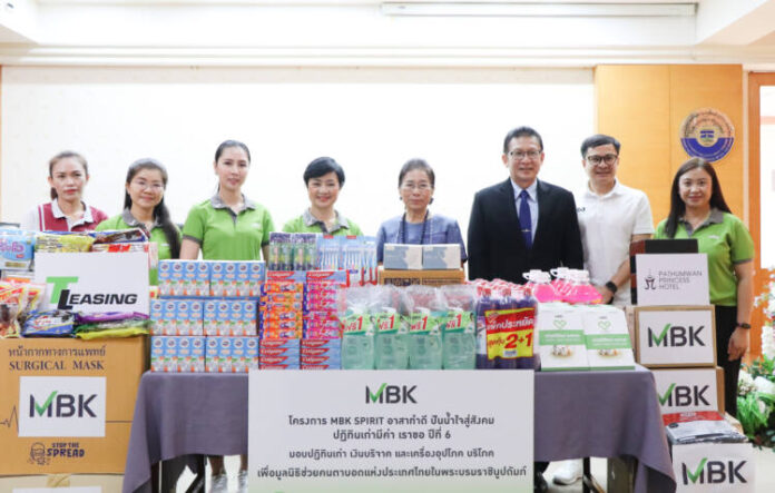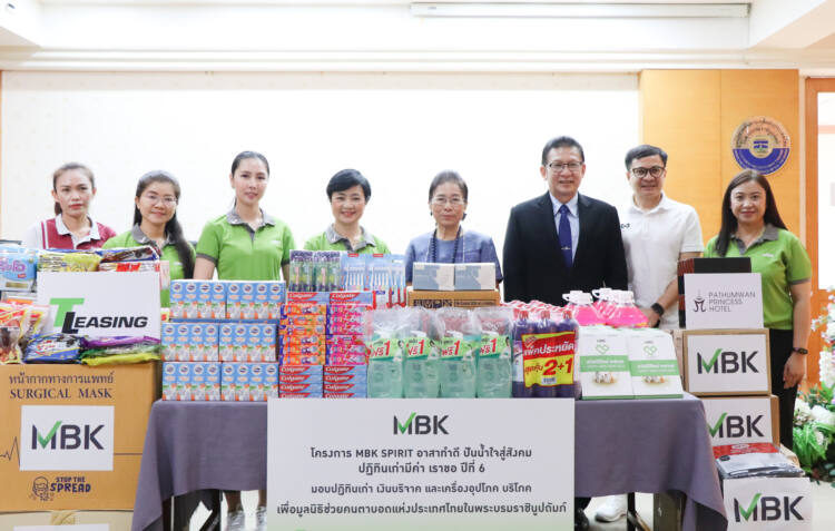 เอ็ม บี เค และ บริษัทในเครือ นำโดย นางสาวศตกมล วรกุล ผู้อำนวยการฝ่ายสื่อสารองค์กร บริษัท เอ็ม บี เค จำกัด (มหาชน) (ที่ 4 จากซ้าย) และ ตัวแทนจิตอาสา MBK SPIRIT จาก บริษัท ที ลีสซิ่ง จำกัด และ บริษัท เอ็ม บี เค โฮเต็ล แอนด์ ทัวร์ริซึ่ม จำกัด ร่วมมอบปฏิทินที่ใช้แล้วจำนวน 3,660 เล่มเพื่อนำไปรีไซเคิลเป็นสื่อการเรียนการสอนอักษรเบรลล์สำหรับผู้พิการทางการมองเห็น พร้อมมอบเครื่องอุปโภคบริโภค ผลิตภัณฑ์ทำความสะอาด หน้ากากอนามัย และเงินบริจาค เพื่อสานต่อโครงการ MBK SPIRIT อาสาทำดี ปันน้ำใจสู่สังคม ปฏิทินเก่ามีค่า เราขอ ปีที่ 6 โดยมี นางณัฏฐา มะระกานนท์ รองประธานกรรมการมูลนิธิช่วยคนตาบอดแห่งประเทศไทยในพระบรมราชินูปถัมภ์ (ที่ 5จากซ้าย)และ นายประสงค์ สุบรรณพงษ์ ผู้อำนวยการโรงเรียนสอนคนตาบอดกรุงเทพ (ที่ 6 จากซ้าย)เป็นผู้รับมอบ พร้อมจิตอาสา MBK SPIRIT ร่วมเลี้ยงอาหารกลางวัน ขนมเบเกอรีและไอศกรีมให้แก่น้อง ๆ ณ มูลนิธิช่วยคนตาบอดแห่งประเทศไทยในพระบรมราชินูปถัมภ์ เมื่อเร็ว ๆ นี้