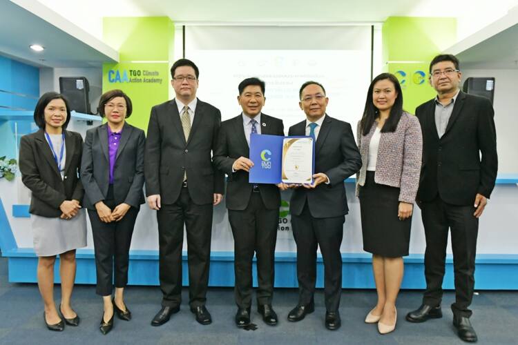 นายสมคิด วรรณลุกขี ผู้อำนวยการใหญ่ ธุรกิจไก่ไข่ ซีพีเอฟ เข้ารับมอบประกาศนียบัตรการรั บรองเครื่องหมายลดคาร์บอนฟุตพริ้ นท์ หรือ “ฉลากลดโลกร้อน” ของผลิตภัณฑ์ไข่ไก่สด Cage Free และไข่ไก่สดปลอดสาร ในขนาดบรรจุต่างๆ รวม 23 รายการ จากนายเกียรติชาย ไมตรีวงษ์ ผู้อำนวยการ องค์การบริหารจัดการก๊าซเรื อนกระจก (องค์การมหาชน) หรือ อบก. นับเป็น “ไข่ไก่สด” ไข่ Cage Free รายแรกของไทยที่ได้รับขึ้นทะเบี ยนรับรองเป็นสินค้าช่วยลดโลกร้ อน หนุนคนไทยได้บริโภคไข่ไก่ที่เป็ นมิตรต่อสิ่งแวดล้อม และเป็นตัวอย่างที่ดีในการบริ หารจัดการและลดการปล่อยก๊าซเรื อนกระจกตลอดห่วงโซ่คุณค่า ณ อาคารรัฐประศาสนภักดี ศูนย์ราชการเฉลิมพระเกียรติฯ ถนนแจ้งวัฒนะ