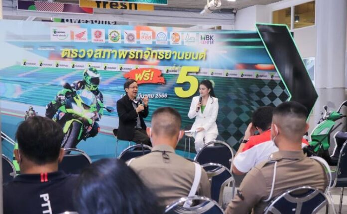 วันที่ 16 มี.ค. 2566 บริเวณลาน อเวนิว โซน A ศูนย์การค้า เอ็ม บี เค เซ็นเตอร์ บริษัท ที ลีสซิ่ง จำกัด ผู้ให้บริการสินเชื่อเช่า–ซื้อ รถจักรยานยนต์ ในเครือ เอ็ม บี เค ร่วมกับ กรมควบคุมมลพิษ (คพ.) สำนักงานกองทุนสนับสนุนการสร้างเสริมสุขภาพ (สสส.) ศูนย์การค้า เอ็ม บี เค เซ็นเตอร์ (MBK) ฮอนด้า ยามาฮ่า หจก. บางกอกมอไซค์ สำนักงานเขตปทุมวัน สถานีตำรวจปทุมวัน สำนักงานเครือข่ายองค์กรงดเหล้า (สคล.) และ ศูนย์วิชาการเพื่อขับเคลื่อนการป้องกันและแก้ไขปัญหามลพิษอากาศ (ศวอ.) จัดกิจกรรม “ที ลีสซิ่ง เปื้อนยิ้ม เพิ่มห่วงใย ตรวจสภาพรถจักรยานยนต์ ฟรี ครั้งที่ 5” ให้บริการเปลี่ยนถ่ายน้ำมันเครื่อง ตรวจสภาพรถจักรยานยนต์ และตรวจควันดำสำหรับรถยนต์ดีเซลและตรวจวัดก๊าซ CO/HC และระดับเสียงของรถจักรยานยนต์ ให้ประชาชนก่อนเดินทางช่วงเทศกาลสงกรานต์ ฟรี! ระหว่างวันที่ 16 – 17 มี.ค. 2566 เวลา 10.00 น. – 16.00 น.