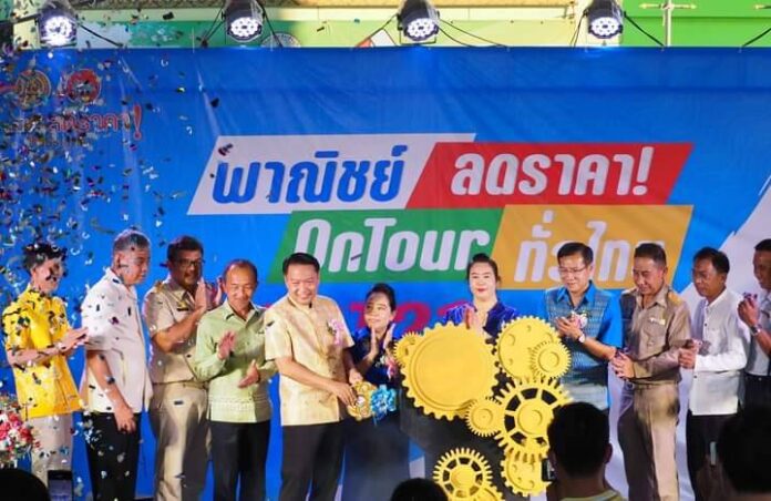 วันจันทร์ที่ 27 มีนาคม 2566 เวลา 17.30 น. นายสัมฤทธิ์ กองเงิน รองผู้ว่าราชการจังหวัดสิงห์บุรี พร้อมด้วย นางจิราภรณ์ กองเงิน รองนายกเหล่ากาชาดจังหวัดสิงห์บุรี เป็นประธานในพิธีเปิดงาน “พาณิชย์…ลดราคา! ! On Tour ทั่วไทย” Lot 21 จังหวัดสิงห์บุรี ครั้งที่ 2 โดยมี นางสาวจรรยวรรธน์ อ้วนตา พาณิชย์จังหวัดสิงห์บุรี พร้อมด้วยหัวหน้าส่วนราชการ ภาคเอกชน และสื่อมวลชน ร่วมให้การต้อนรับ ณ บริเวณโดมโรงเรียนอินทร์บุรี ตำบลอินทร์บุรี อำเภออินทร์บุรี จังหวัดสิงห์บุรี ซึ่งจัดขึ้นระหว่างวันที่ 27 – 29 มีนาคม 2566 ตั้งแต่เวลา 09.30-20.00 น. เพื่อบรรเทาความเดือดร้อนและลดภาระค่าครองชีพของประชาชน กระตุ้นเศรษฐกิจให้มีการจับจ่ายใช้สอยของประชาชน และการจ้างงานเพิ่มมากขึ้น ให้ประชาชนได้มีช่องทางในการเลือกซื้อสินค้าอุปโภคบริโภคที่มีความจำเป็นต่อการดำรงชีวิตประจำวันในราคาประหยัด ทั้งยังเป็นการเพิ่มช่องทางการจำหน่ายสินค้าและเสริมสร้างศักยภาพผู้ประกอบการ และกลุ่มเกษตรกรภายในงานจำหน่ายสินค้าอุปโภคบริโภค ที่จำเป็นต่อการครองชีพ กว่า 100 บูธ เช่น สินค้าเกษตร สินค้าชุมชน อาหารสด อาหารแปรรูป ของใช้ประจำวัน เครื่องแต่งกายเครื่องครัวและเครื่องใช้ไฟฟ้า โดยมีสินค้า Highlight ราคาพิเศษ ได้แก่ (1) หมูเนื้อแดง ราคากิโลกรัมละ 100 บาท (2) น่องไก่ติดสะโพก ราคากิโลกรัมละ 40 บาท (3) ไข่ไก่ เบอร์ M (2-3) ราคาแผงละ 80 บาท (4) น้ำตาลทราย ราคากิโลกรัมละ 15 บาท (5) น้ำมันพืชปาล์ม ราคาขวดละ 35 บาท (6) ข้าวขาว 5% (ถุงละ 5 กก.) ราคาถุงละ 70 บาท (7)ข้าวหอมมะลิ (ถุงละ 5 กก.) ราคาถุงละ 100 บาท ทั้งนี้กิจกรรมดังกล่าวได้รับความสนใจจากประชาชนเป็นจำนวนมาก