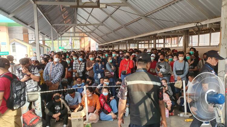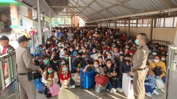 เมื่อเวลา 08.00 น.วันที่ 9 เม.ย. 66 ที่ ด่าน ตม.อรัญประเทศ จุดผ่านแดนถาวรบ้านคลองลึก อ.อรัญประเทศ จ.สระแก้วได้มีแรงงานชาวกัมพูชาที่ทำงานอยู่ในประเทศไทย นับหมื่นคน ทยอยแห่เดินทางมาเพื่อจะเดินทางกลับไปเยี่ยมครอบครัวและเที่ยวเทศกาลสงกรานต์ที่บ้านเกิดในฝั่งกัมพูชา จนทำให้บริเวณช่องทางเดินเท้าเข้าอาคารผู้โดยสารขาออกราชอาณาจักรด่าน ตม.อรัญประเทศ จ.สระแก้ว เนืองแน่นและเต็มไปด้วยแรงงานชาวกัมพูชาที่ขนสัมภาระและหอบลูกจูงหลาน เพื่อจะเดินทางกลับไปเที่ยวสงกรานต์ที่บ้านเกิดในฝั่งกัมพูชา