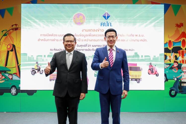 เมื่อวันที่ 21 เมษายน 2566 ดร.สุทธิพล ทวีชัยการ เลขาธิการคณะกรรมการกำกับและส่งเสริมการประกอบธุรกิจประกันภัย (เลขาธิการ คปภ.) พร้อมด้วย นายจิรุตม์ วิศาลจิตร อธิบดีกรมการขนส่งทางบก ร่วมแถลงข่าวเปิดตัวระบบการเชื่อมโยงข้อมูลเพื่อตรวจสอบการจัดทำประกันภัย พ.ร.บ. สำหรับการชำระภาษีรถประจำปี ระหว่าง สำนักงานคณะกรรมการกำกับและส่งเสริมการประกอบธุรกิจประกันภัย (สำนักงาน คปภ.) กับ กรมการขนส่งทางบก (ขบ.) โดยมี นายเสกสม อัครพันธุ์ รองอธิบดีกรมการขนส่งทางบก ผู้บริหารกรมการขนส่งทางบก ผู้บริหารสำนักงาน คปภ. ผู้แทนจากสมาคมประกันวินาศภัยไทย และสื่อมวลชน ร่วมด้วย ณ ห้องประชุมสถาบันวิทยาการประกันภัยระดับสูง ชั้น 2 สำนักงาน คปภ. ถนนรัชดาภิเษก กรุงเทพฯ