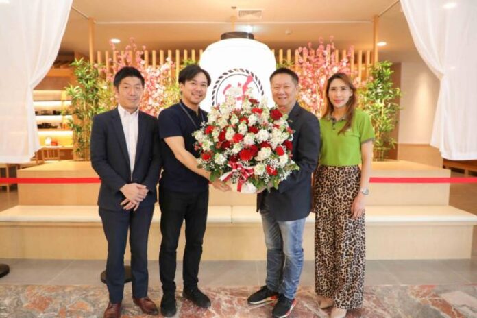 นายสมพล ตรีภพนารถ (ที่ 3 จากซ้าย) ประธานเจ้าหน้าที่บริหารธุรกิจศูนย์การค้าบริษัท เอ็ม บี เค จำกัด (มหาชน) นำทีมผู้เช่าสัมพันธ์มอบดอกไม้แสดงความยินดีแก่ นายโคตะ ทามากิ (ที่ 2 จากซ้าย) ประธานบริษัท และ นายโคอิจิ มิยาซากิ (ที่ 1 จากซ้าย) กรรมการ บริษัท ดองกิ (ประเทศไทย) จำกัด เนื่องในโอกาสเปิดร้าน SEN SEN SUSHI คัดสรรวัตถุดิบคุณภาพและสดใหม่จากแหล่งวัตถุดิบทั่วโลก ผสานกับข้าวญี่ปุ่นสายพันธุ์ Nanatsuboshi ส่งตรงจากฮอกไกโด รังสรรค์เมนูหลากหลายมากกว่า 130 รายการ สาขาใหม่พร้อมให้บริการ ณ ชั้น 3 โซน A ศูนย์การค้าเอ็ม บี เค เซ็นเตอร์