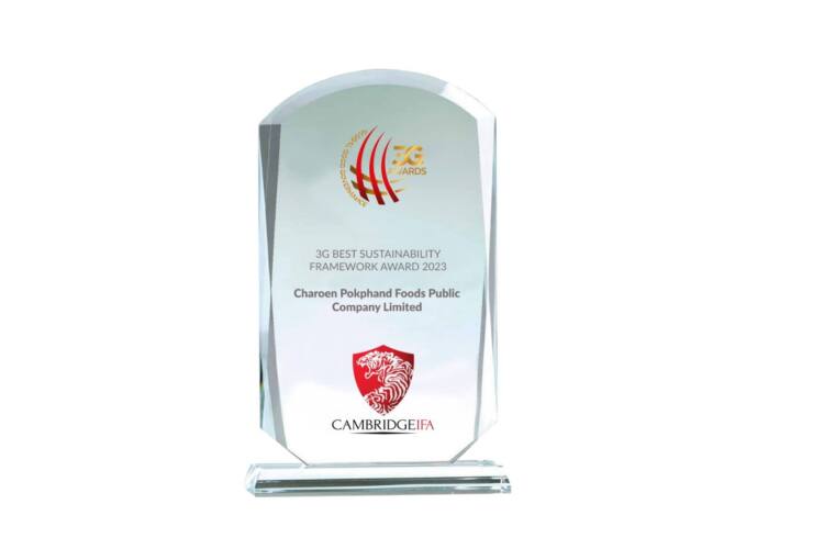 รางวัล 3G Best Sustainability Framework Award 2023 เป็นรางวัลที่เชิดชูเกียรติองค์กรที่มีการกำหนดนโยบายและกลยุทธ์ในการขับเคลื่อนความยั่งยืนด้านสิ่งแวดล้อมและสังคม เพื่อสร้างประโยชน์ทางเศรษฐกิจ สร้างผลกระทบเชิงบวกให้กับสังคมและสิ่งแวดล้อมอย่างต่อเนื่อง บนพื้นฐานของการกำกับดูแลกิจการที่ดี โดยบริษัทฯ มีความมุ่งมั่นและให้ความสำคัญการพัฒนานวัตกรรมและการส่งเสริมการใช้เทคโนโลยีในกระบวนการผลิตอาหารเพื่อสร้างความมั่นคงทางอาหาร และลดการปล่อยก๊าซเรือนกระจกตามเป้าหมายลดการปล่อยก๊าซเรือนกระจกสุทธิเป็นศูนย์ (Net-Zero) 2050