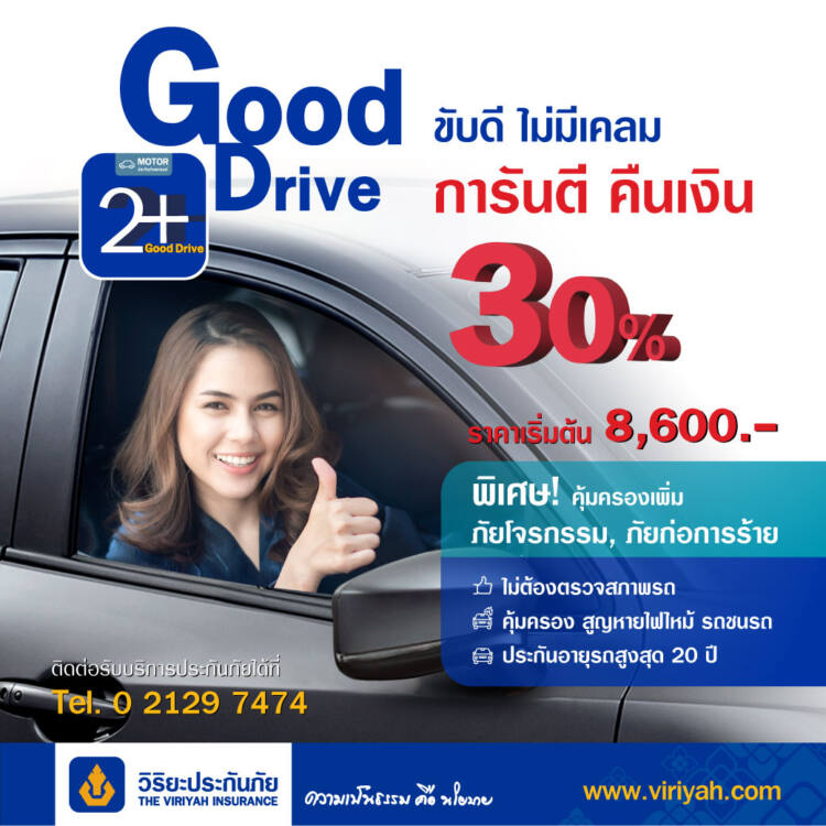 วิริยะประกันภัย เปิดตัวผลิตภัณฑ์ใหม่เพื่อส่งเสริมให้คนขับรถดีมีวินัย “2+ Good Drive” ด้วยเงื่อนไขพิเศษ “ขับรถดี ไม่มีเคลม” การันตีคืนเงิน 30%! เพิ่มเติมความคุ้มครองภัยก่อการร้าย ภัยโจรกรรมทรัพย์สินส่วนบุคคลภายในรถ เผยเป็นความคุ้มครองที่เกิดจากการใช้ฐานข้อมูลขนาดใหญ่ที่มีอยู่นำมาวิเคราะห์ จึงทำให้ลงลึกไปถึงพฤติกรรมผู้ขับรถได้ ทั้งนี้ 2+ Good Drive เป็นผลิตภัณฑ์เพื่อสังคม ไม่เน้นเรื่องเป้าหมายยอดขาย