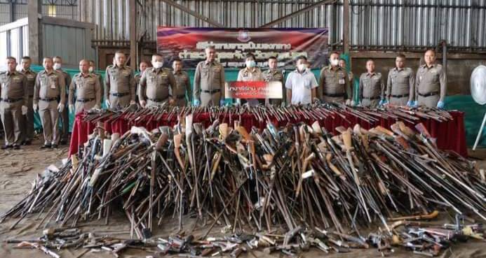 พ.ต.อ.โชคชัย อินทะนิน รองผู้บังคับการตำรวจภูธรจังหวัดสกลนคร รายงานว่า ในห้วงที่ผ่านมา ได้มีการขยายผล ทลายเครือข่ายอาวุธปืนผิดกฎหมาย รวมทั้งการลักลอบค้าอาวุธปืนทางออนไลน์ เพื่อป้องกันมิให้มีการนำเอาอาวุธปืนดังกล่าวกลับมาใช้ก่อเหตุในคดีอาญา หรือลักลอบจำหน่ายไปยังบุคคลไม่หวังดี ตกอยู่ในมือของคนร้าย โดยอาวุธปืนดังกล่าวส่วนใหญ่เป็นอาวุธปืนไทยประดิษฐ์และอาวุธปืนดัดแปลง จำนวนทั้งสิ้น 1,228 กระบอก ถูกนำเข้าเครื่องบีบอัดแรงดัน 30,000 ปอนด์ เพื่อไม่ให้สามารถนำกลับใช้งานได้และส่วนหนึ่งอาวุธปืนที่มีเครื่องหมายทะเบียน เครื่องกระสุนปืน และวัตถุระเบิด จะส่งให้สรรพาวุธ ดำเนินการตามระเบียบที่เกี่ยวข้อง