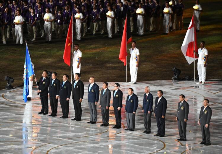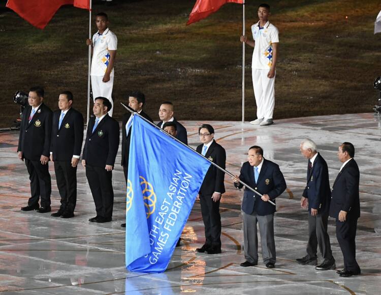 ขณะที่ประเทศไทย มีนายชัชชาติ สิทธิพันธุ์ ผู้ว่าฯ กทม., นายนิติ วิวัฒน์วานิช รองผู้ว่าฯ ชลบุรี, นายเจษฎา จิตรัตน์ ผู้ว่าฯ สงขลา, นายประชุม บุญเทียม รองผู้ว่าการการกีฬาแห่งประเทศไทย ร่วมรับมอบธงเจ้าภาพ ทั้งนี้ สำหรับกีฬาซีเกมส์ 2023 เจ้าเหรียญทองอันดับหนึ่งเป็น เวียดนาม มี 136 เหรียญทอง 105 เหรียญเงิน 118 เหรียญทองแดง รวม 359 เหรียญ ขณะที่นักกีฬาทีมชาติไทย อันดับที่ 2 มี 108 เหรียญทอง 96 เหรียญเงิน 108 เหรียญทองแดง รวม 312 เหรียญ
