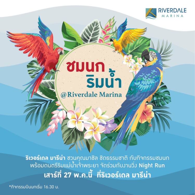 ริเวอร์เดล มารีน่า (Riverdale Marina) ท่าเรือระดับ A-Class และศูนย์กลางผู้ให้บริการกิจกรรมทางน้ำอย่างครบวงจรแห่งแรกในลุ่มแม่น้ำเจ้าพระยา อีกหนึ่งธุรกิจในเครือเอ็ม บี เค ชวนคุณมาชิล ชิดธรรมชาติ กับกิจกรรม ชมนก ริมน้ำ ฟรี!เพลิดเพลินกับชมการบินของนกสวยงามอย่างใกล้ชิด พร้อมถ่ายรูปเซลฟี่กับน้อง ๆ ที่ลาน Event Lawn ริมแม่น้ำเจ้าพระยา ในงาน เดิน-วิ่ง Night Run “Change The Future 2023” วันเสาร์ที่ 27 พฤษภาคม 2566 ตั้งแต่เวลา 16.00 น.เป็นต้นไป ณ ริเวอร์เดล มารีน่า และภายหลังจบการแข่งขันแล้ว นักวิ่งยังได้ดื่มด่ำความสุข ความสนุก กับมินิคอนเสิร์ตริมน้ำ River Vibe Concert อีกด้วย