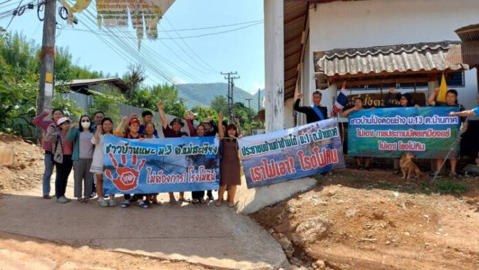 3 หมู่บ้าน เตรียมรวมมวลชน ยื่นหนังสือคัดค้านไม่เอาโรงโม่หิน หลัง อุตสาหกรรมจังหวัดฯ ติดประกาศขอประทานบัตรทำเหมืองแร่ ตัวแทนราษฏร 3 หมู่บ้าน ถือป้ายยืนยันไม่เอาโรงโม่หิน