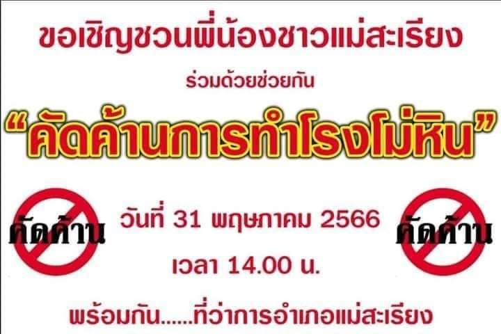 30 พฤษภาคม 2566 ชาวบ้านในหมู่บ้านโป่งดอยช้าง / บ้านท่าข้าม ตำบลบ้านกาศ และชาวบ้านแพะ ตำบลแม่สะเรียง อำเภอแม่สะเรียง จังหวัดแม่ฮ่องสอน นำป้ายข้อความคัดค้านการทำเหมืองแร่ ติดตั้งไว้บริเวณทางเข้าหมู่บ้าน หลังจากอุตสาหกรรมจังหวัดแม่ฮ่องสอน นำหนังสือการขอประทานบัตรทำเหมืองแร่ ติดประกาศให้ทราบว่า มีบริษัทเอกชน ได้ยื่นคำขอประทานบัตรทำเหมืองแร่หินอุตสาหกรรม ชนิดหินปูนเพื่ออุตสาหกรรมก่อสร้าง คำขอที่ 1/2565 เนื้อที่ 132-0-97 ไร่ ในพื้นที่ป่ารอยต่อหมู่บ้านโป่งดอยช้าง หมู่ 13 ตำบลบ้านกาศ และ บ้านแพะหมู่ 3 ตำบลแม่สะเรียง อ.แม่สะเรียง จ.แม่ฮ่องสอน ส่งผลให้ชาวบ้านในพื้นที่ ออกมาคัดค้าน เนื่องจากเกรงจะได้รับผลกระทบ ด้านมลพิษในอากาศ เสียง สิ่งแวดล้อม และวิถีชีวิต