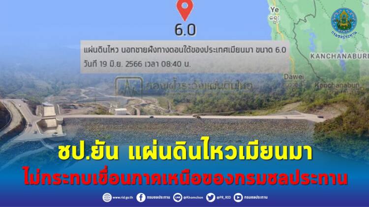 19มิ.ย.66 / นายประพิศ จันทร์มา อธิบดีกรมชลประทาน เปิดเผยว่า ตามที่ได้เกิดเหตุการณ์แผ่นดินไหวในพื้นที่นอกชายฝั่งทางตอนใต้ของประเทศเมียนมา ทางทิศตะวันตกเฉียงใต้ของ อำเภอพบพระ จังหวัดตาก เมื่อเวลา 08.40 น. ของวันนี้ (19 มิถุนายน 2566) วัดแรงสั่นสะเทือนได้ 6.0 ที่ความลึก 10 กิโลเมตร นั้น กรมชลประทาน โดยส่วนวิศวกรรมธรณี สำนักสำรวจด้านวิศวกรรมและธรณีวิทยา ได้เข้าตรวจสอบค่าอัตราเร่งสูงสุดที่มีผลกระทบต่อเขื่อนแล้ว พบว่าค่าอัตราเร่งสูงสุดของพื้นดินที่เกิดขึ้น มีค่าเพียง 0.0004519 g ซึ่งค่าอัตราเร่งสูงสุดที่กรมชลประทานได้ออกแบบไว้ สามารถรองรับแผ่นดินไหว มีค่าไม่น้อยกว่า 0.2 g