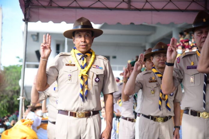 ลูกเสือกรุงเทพมหานคร น้อมรำลึกในพระมหากรุณาธิคุณพระบาทสมเด็จพระมงกุฎเกล้าเจ้าอยู่หัว พระผู้พระราชทานกำเนิดลูกเสือไทย พร้อมถวายความจงรักภักดีแด่พระบาทสมเด็จพระเจ้าอยู่หัว พระประมุขคณะลูกเสือแห่งชาติ