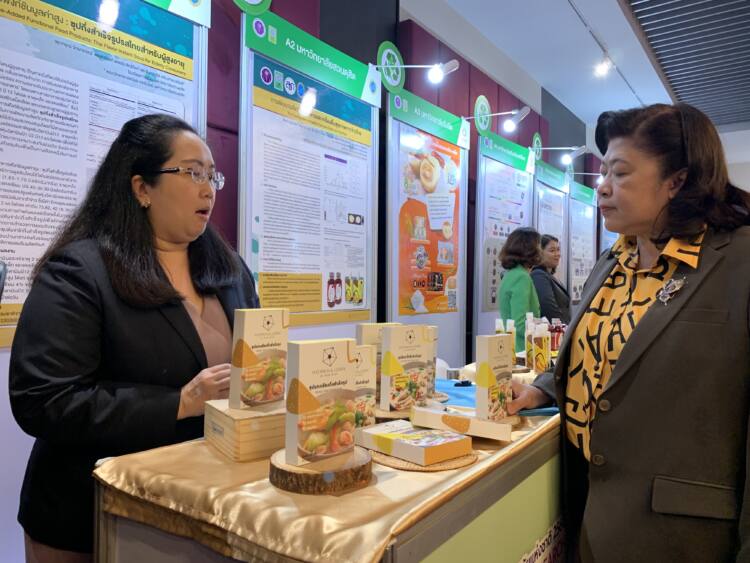 ส่วนผลงานจากมหาวิทยาลัยราชภัฏพระนครศรีอยุธยา ที่ต่อยอดความรู้และสร้างการมีส่วนร่วมของชุมชนในการฟื้นฟูและยกระดับลายผ้าโบราณให้เป็นผลิตภัณฑ์ใหม่ที่มีความร่วมสมัยแต่ยังคงความเป็นเอกลักษณ์จากมรดกภูมิปัญญาของชุมชน เครื่องวัดก๊าซคาร์บอนมอนอกไซด์ในลมหายใจพร้อมการตอบสนองด้วยเสียง ผลงานจากสถาบันพระบรมราชชนก ที่พัฒนาขึ้นเพื่อใช้ในการคัดกรองระดับการติดบุหรี่ และ ติดตามผลการเลิกบุหรี่ และการใช้ประโยชน์จากโปรตีนจิ้งหรีด เพื่อพัฒนาผลิตภัณฑ์ฟังก์ชั่นนอลฟู้ด สูตรโปรตีนสูงไขมันต่ำ และนวัตกรรมเซลล์เคมีไฟฟ้าขั้นสูงสำหรับบำบัดน้ำในระบบเลี้ยงปลาที่มีมูลค่าทางเศรษฐกิจ
