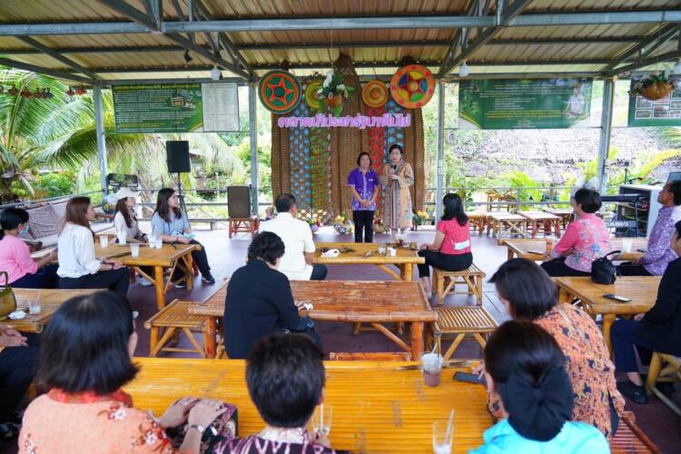 31ก.ค.66 / ในโอกาสนี้ ปลัดกระทรวงวัฒนธรรม พร้อมคณะ ได้รับฟังการบรรยายผลิตภัณฑ์จากน้ำมันมะพร้าวสกัดเย็น จากนายศุภชาติ ศรีเทพ ผู้ดูแลสวนลุงสงค์ รุ่น 2 และการบรรยายความคืบหน้าของชุมชนบางใบไม้ โดยนางสาวจรัญญา ศรีรักษ์ กำนันตำบลบางใบไม้