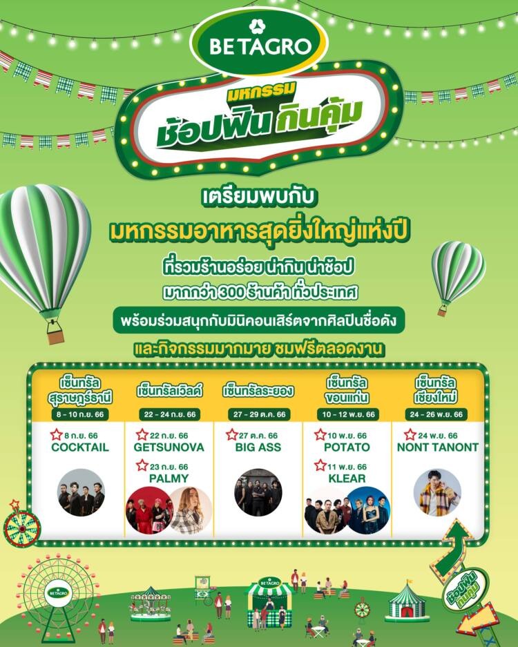 “บริษัท เบทาโกร จำกัด (มหาชน)” หรือ “BTG” นำโดย “นายไตรรัตน์ ทองปลอด” ประธานเจ้าหน้าที่ปฏิบัติการ กลุ่มธุรกิจโปรตีน “ดร.โอลิเวอร์ ก็อตชัลล์” ประธานเจ้าหน้าที่ปฏิบัติการ กลุ่มธุรกิจอาหาร ชวนร่วมงาน “ช้อปฟิน กินคุ้ม” มหกรรมอาหารสุดยิ่งใหญ่แห่งปี ที่ยกทัพความอร่อย น่ากินน่าช้อป จากผู้ประกอบการอาหารที่เป็นคู่ค้าเบทาโกร และร้านเด็ดร้านดังประจำจังหวัด มากกว่า 300 ร้านทั่วประเทศ พร้อมมินิคอนเสิร์ตจากศิลปินชื่อดัง ไม่ว่าจะเป็น Cocktail, Getsunova, Palmy, BIG ASS, Potato, Klear และ นนท์ ธนนท์ ที่จะมาระเบิดความสนุกถึงที่ ชมฟรีตลอดงานทั่วภูมิภาคของไทย โดยวันที่ 8-10 กันยายน 2566 พบกันที่ “เซ็นทรัลสุราษฎร์ธานี”, วันที่ 22-24 กันยายน 2566 พบกันที่ “เซ็นทรัลเวิลด์”, วันที่ 27-29 ตุลาคม 2566 พบกันที่ “เซ็นทรัลระยอง”, วันที่ 10-12 พฤศจิกายน 2566 พบกันที่ “เซ็นทรัลขอนแก่น” และวันที่ 24-26 พฤศจิกายน 2566 พบกันที่ “เซ็นทรัลเชียงใหม่” อย่าลืมมาพบกับกิจกรรมดี ๆ ที่ทุกคนห้ามพลาดใกล้ที่ไหน ไปที่นั่น แล้วมาสนุกร่วมกับเบทาโกร