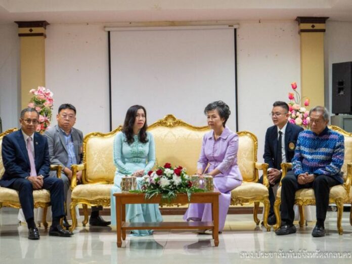 (4 ก.ย 66) ที่โรงแรม พีซี แกรนด์ สกลนคร นางจุรีรัตน์ เทพอาสน์ ผู้ว่าราชการจังหวัดสกลนคร นายอดิศักดิ เทพอาสน์ อดีตผู้ว่าราชการจังหวัดสกลนคร ที่ปรึกษาผู้ว่าราชการจังหวัดสกลนคร พร้อมด้วยคณะส่วนราชการ องค์กรปกครองส่วนท้องถิ่น ผู้บริหารสถานศึกษา ภาคเอกชน จังหวัดสกลนคร ให้การต้อนรับ ท่านเลถิ ทูหั่ง (LE. Thi Thu HANG) รัฐมนตรีช่วยว่าการกระทรวงการต่างประเทศเวียดนาม นายพาน จีท่าน (PHAN Chi Than) เอกอัคราชทูตเวียดนาม ประจำประเทศไทย นายจูดึกยูง (Chu Duc Dung) กงสุลใหญ่เวียดนาม ประจำจังหวัดขอนแก่น และคณะ ในโอกาสเดินทางเข้าร่วมกิจกรรมงานเฉลิมฉลองวาระครบรอบ 10 ปี สมาคมชาวเวียดนามแห่งประเทศไทย