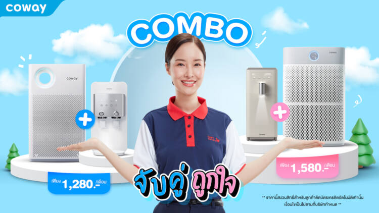 วันนี้ ผู้สนใจอยากสัมผัสผลิตภัณฑ์และบริการบนมาตรฐานระดับโลก Coway Heart Service สามารถติดต่อศูนย์บริการและตัวแทนใกล้บ้านได้ทุกวัน และในช่วงนี้ โคเวย์ยังจัดโปรโมชัน จับคู่บริการเครื่องกรองน้ำและเครื่องฟอกอากาศในราคา Subscription สุดคุ้ม โดยคุณจะได้ทั้งเครื่องกรองน้ำรุ่น Neo Plus คู่กับเครื่องฟอกอากาศ Classic ในราคาเพียง 1,280 บาทต่อเดือน และเครื่องกรองน้ำรุ่น G1 คู่กับเครื่องฟอกอากาศ Giant ในราคาเพียง 1,580 บาทต่อเดือน เพื่อการสร้างเสริมสุขภาพที่ดีแบบครบวงจร ได้ทั้งน้ำดื่มสะอาดไม่ขาดตอนและอากาศที่สะอาดบริสุทธิ์ตลอดวัน