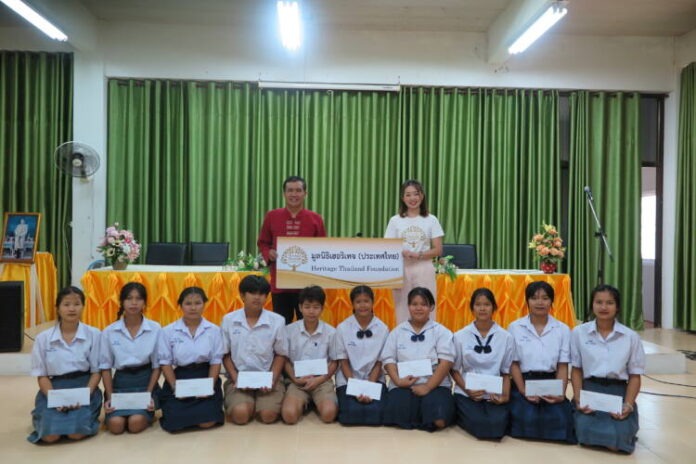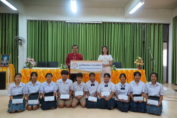 มูลนิธิเฮอริเทจ (ประเทศไทย) ภายใต้การดูแลของเครือเฮอริเทจ ผู้ผลิตและจัดจำหน่ายอาหารและเครื่องดื่มเพื่อสุขภาพ นำโดย วลัยทิพย์ ซื่อตรงมั่นคง (ขวา) ผู้อำนวยการฝ่ายสื่อสารองค์กร เครือเฮอริเทจ มอบทุนการศึกษาในโครงการ “แบ่งปัน สานฝันการศึกษา” ครั้งที่ 6 สร้างคุณค่าและโอกาสทางการศึกษาให้แก่นักเรียนเรียนดีแต่ขาดแคลนทุนทรัพย์ โดยมอบให้เป็นรายเดือนจนจบระดับมัธยมศึกษา เป็นจำนวน 10 ทุน และมอบเครื่องบริโภคให้กับครอบครัวของนักเรียนทั้งหมด 60 ครอบครัว รวมมูลค่า กว่า 300,000 บาท ณ โรงเรียนหนองบัวปิยนิมิตร จังหวัดมหาสารคาม เมื่อวันก่อน