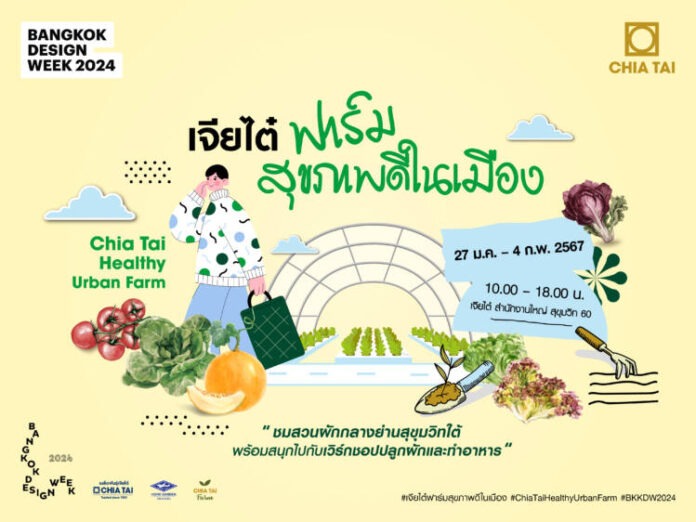 กรุงเทพฯ 18 มกราคม 2567 – บริษัท เจียไต๋ จำกัด ผู้นำนวัตกรรมการเกษตรของไทย ร่วมเป็นส่วนหนึ่งในงานเทศกาลออกแบบกรุงเทพฯ 2567 (Bangkok Design Week 2024) โดยสำนักงานส่งเสริมเศรษฐกิจสร้างสรรค์ (องค์การมหาชน) หรือ CEA ที่ปีนี้ได้มาจัดที่ย่านสุขุมวิทใต้ภายใต้แนวคิด สุขุมวิทใต้… ความลงตัวของนวัตกรรมและเสน่ห์ชุมชน โดยหนึ่งในนั้น เจียไต๋ได้เปิดบ้านสำนักงานใหญ่ สุขุมวิท 60 เนรมิตสวนผักกลางเมืองย่านสุขุมวิทใต้ ส่งต่อแรงบันดาลใจในการปลูกผักในพื้นที่จำกัดในงาน “เจียไต๋ ฟาร์มสุขภาพดีในเมือง (Chia Tai Healthy Urban Farm)” ขอชวนทุกท่านมาขยับเข้าใกล้วิถีเกษตรและพื้นที่สีเขียวกันให้มากขึ้น ตั้งแต่วันที่ 27 มกราคม ถึง 4 กุมภาพันธ์ พ.ศ. 2567 เวลา 10:00-18:00 น. ณ อาคารสำนักงานใหญ่เจียไต๋ สุขุมวิท 60