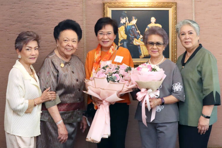 พญ. คุณหญิง กอบจิตต์ ลิมปพยอม นัดเพื่อนๆ สมาชิกกลุ่มอาหารกลางวัน อาทิ คุณหญิงกรกช มีเพียร คุณหญิงยุพดี สิงห์โตโรจน์ และ สุภรณ์ วิจิตรานุช มาร่วมแสดงความยินดีกับ ดร. คุณหญิงกัลยา โสภณพนิช ที่ได้รับรางวัลคุรุสภา “ผู้มีคุณูปการต่อการศึ