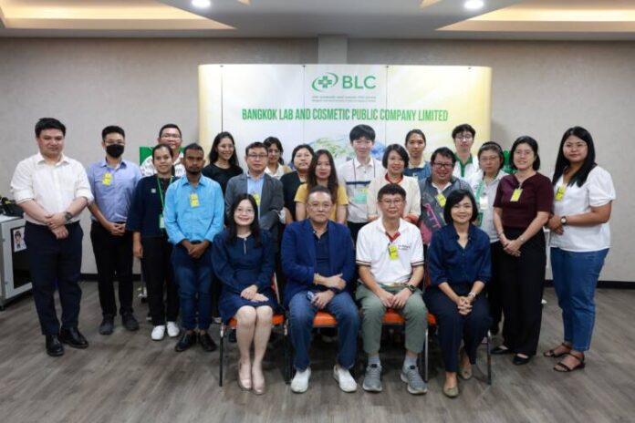 ภก.สุวิทย์ งามภูพันธ์ (แถวนั่งที่ 2 จากซ้าย) ประธานเจ้าหน้าที่บริหาร บริษัท บางกอกแล็ป แอนด์ คอสเมติค จำกัด (มหาชน) หรือ BLC เปิดบ้านต้อนรับคณะผู้เข้าอบรมจากโครงการอบรมพัฒนาศักยภาพผู้ประกอบการด้านผลิตภัณฑ์สมุนไพร จัดโดยวิทยาลัยเภสัชกรรมสมุนไพรแห่งประเทศไทย (ว.ภ.ส.) เนื่องในโอกาสเข้าเยี่ยมชมโรงงาน เพื่อศึกษากระบวนการผลิตและการควบคุมคุณภาพผลิตภัณฑ์สมุนไพรมาตรฐานระดับสากล หน่วยวิจัยและพัฒนานวัตกรรมสมุนไพร ศูนย์วิจัย BLC Research Center พร้อมรับฟังการบรรยายการดำเนินธุรกิจด้านผลิตภัณฑ์สมุนไพรจาก BLC ในฐานะหนึ่งในผู้นำธุรกิจผลิต และจำหน่าย ผลิตภัณฑ์ยา และผลิตภัณฑ์เพื่อสุขภาพแบบครบวงจร รวมทั้งแลกเปลี่ยนเรียนรู้เกี่ยวกับอุตสาหกรรมสมุนไพรไทย เพื่อแสวงหาโอกาสความร่วมมือกับพันธมิตรทางธุรกิจ และสร้างการเติบโตอย่างต่อเนื่องให้แก่อุตสาหกรรมสมุนไพรไทย