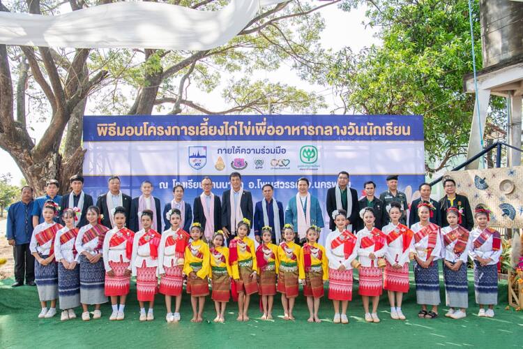 นายวันชัย จันทร์พร ผู้ว่าราชการจังหวัดนครพนม เป็นประธานในพิธี ส่งมอบโครงการเลี้ยงไก่ไข่เพื่ออาหารกลางวันนักเรียน ที่เครือซีพี โดยมูลนิธิเจริญโภคภัณฑ์พัฒนาชีวิตชนบท และ บริษัท เจริญโภคภัณฑ์อาหาร จำกัด (มหาชน) หรือ ซีพีเอฟ ร่วมกับ หอการค้าญี่ปุ่น-กรุงเทพฯ หรือ JCC ดำเนินการเข้าสู่ปีที่ 36 หนุนโภชนาการที่ดี สร้างคลังอาหารในโรงเรียน-ชุมชน มุ่งถ่ายทอดเทคโนโลยีสู่เยาวชน ปูพื้นฐานอาชีพนำองค์ความรู้ไปใช้ในอนาคต ณ โรงเรียนบ้านนาคำ (โพนสวรรค์) อ.โพนสวรรค์ จ.นครพนม