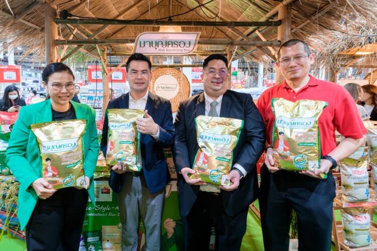 นายกันต์กร นันทพัฒน์สิริ ผู้อำนวยการฝ่ายค้าปลีกสมัยใหม่ บริษัท ข้าวมาบุญครอง จำกัด (ที่ 3 จากซ้าย) ร่วมออกบูธในงาน “เทศกาลข้าวหอมมะลิใหม่ต้นฤดู คัดสรรคุณภาพ จากแปลงนาสู่ผู้บริโภค” ยกทัพผลิตภัณฑ์ข้าวหอมมะลิใหม่