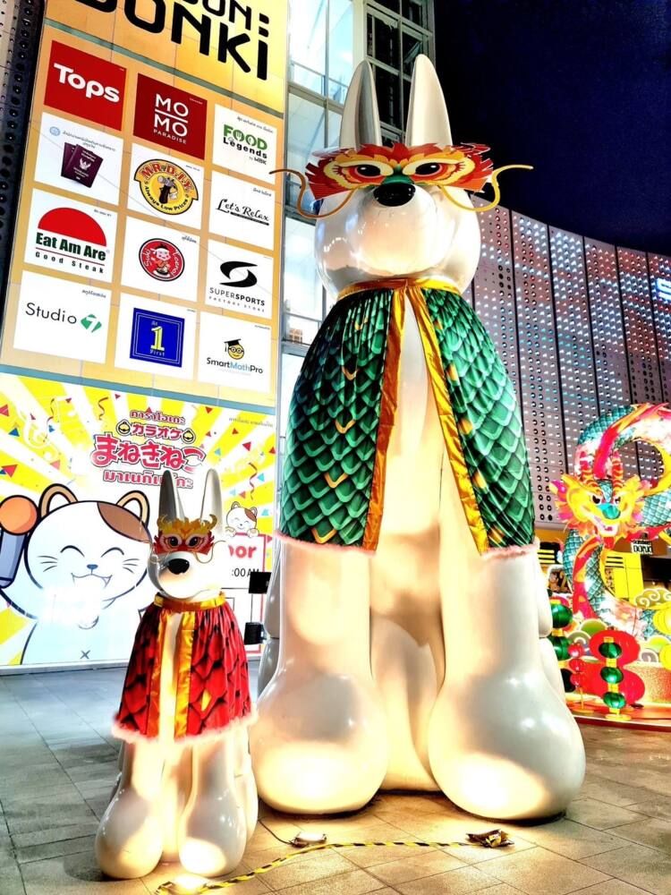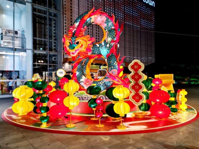 ความสวย ความอลังการ จะเป็นอย่างไรมาเริ่มที่ ศูนย์การค้าเอ็ม บี เค เซ็นเตอร์ ตื่นตา ตื่นใจไปกับ “มังกรสีเขียว” เป็นสัญลักษณ์ของธาตุไม้ ม้วนตัวเป็นเลข 8 ในแนวตั้ง สูง 9 เมตร ลายล้อมด้วยก้อนเมฆ โคมไฟแดง เขียว เหลือง และดอกโบตั๋น พร้อมมีตัวอักษรจีนขนาดใหญ่ แปลว่า “โซคดี” และข้อความตัวอักษรจีน “ซินเหนียนไคว้เล่อ” แปลว่า “สวัสดีปีใหม่” ขณะเดียวกัน น้องมาครับ และ น้องมาจ้ะ ขอแปลงร่างเป็น “มังกรน้อย” สุดน่ารัก กับชุดลายเกล็ดมังกร พร้อมใส่หน้ากากมังกรสุดเก๋ คอยต้อนรับทุกท่านมาเยือน อยู่ตรงลานสกายวอล์ก ส่วนไฮไลต์ที่ไม่อยากให้พลาด ในวันศุกร์ที่ 9 กุมภาพันธ์ 2567 เวลา 18.30 น.เป็นต้นไป พบกับการแสดงกองทัพมังกรทองสุดอลังการ สิงโตมงคล 8 เซียน และการแสดงวัฒนธรรมจีนสุดงดงาม กับโชว์แสงสีเสียงชุด “มหามังกรเบิกฟ้า กึกก้องทั่วหล้า แซ่ซ้องนิรันดร์” ที่บริเวณ ลานสกายวอล์ก
