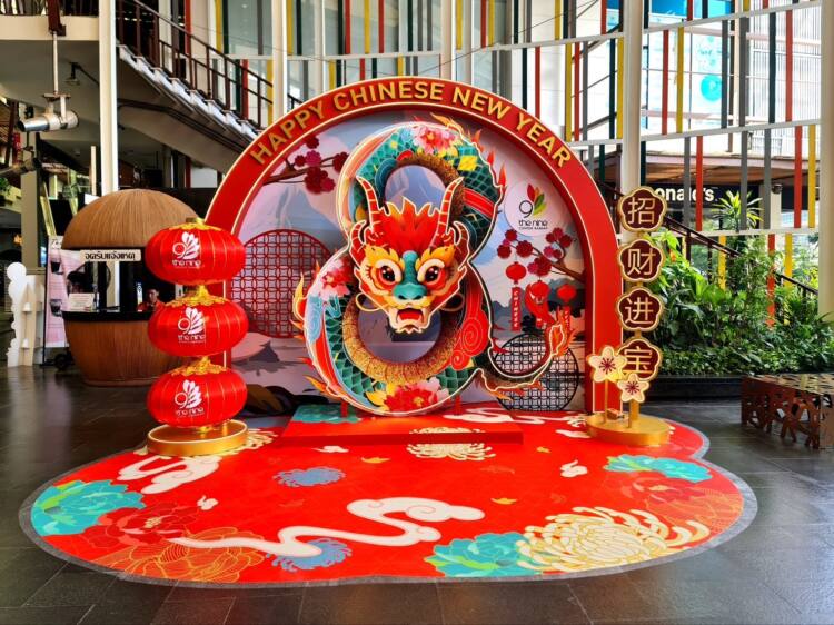 ขณะที่ ศูนย์การค้าเดอะไนน์ เซ็นเตอร์ พระราม 9 และ เดอะไนน์ เซ็นเตอร์ ติวานนท์ ประดับด้วยโคมไฟจีนเป็นสัญลักษณ์ของความโชคดีและความเจริญรุ่งเรืองทั่วทั้งศูนย์การค้าฯแล้ว พลาดไม่ได้กับจุดถ่ายภาพ Pop-up มังกร ม้วนตัวเป็นเลข 8 ในแนวตั้ง พร้อมข้อความตัวอักษรจีน “เจาไฉจิ้นเป่า” แปลว่า เงินทองไหลมาเทมา ทรัพย์สมบัติไหลเข้าบ้าน รวมทั้งการตกแต่งภาพด้านหลังมังกรให้เป็นลวดลายสไตล์จีน รับรองว่าถ่ายภาพสวยเก๋ ไม่ซ้ำใคร และในวันศุกร์ที่ 9 กุมภาพันธ์ 2567 เวลา 12.00 น. เป็นต้นไป ชมการแสดงเชิดสิงโตมังกรทองยาว 30 เมตร และโชว์สิงโตดอกเหมย ที่เดอะไนน์ เซ็นเตอร์ พระราม 9 เช่นเดียวกับ เดอะไนน์ เซ็นเตอร์ ติวานนท์ ตั้งแต่เวลา 17.00 น. ตื่นตากับกองทัพมังกรทองสุดอลังการ สิงโตมงคล และการแสดงวัฒนธรรมจีนสุดงดงาม ในการแสดงแสงสีเสียง บริเวณลานกิจกรรม Center Zone อีกด้วย