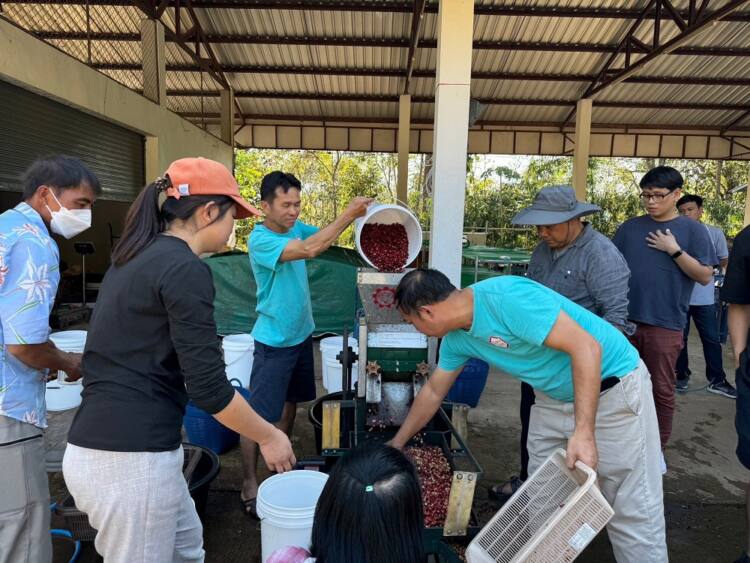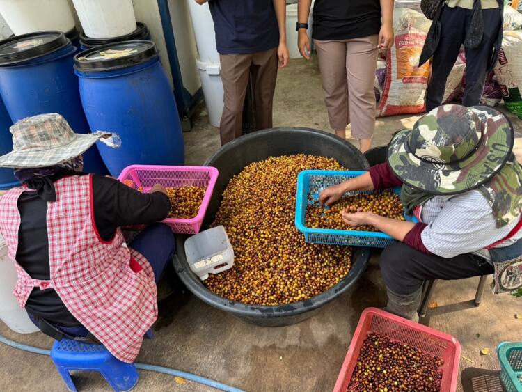 เครือเจริญโภคภัณฑ์ ขับเคลื่อนโครงการ “ซีพี…เพื่อความยั่งยืน : C.P. for Sustainability” มุ่งสร้างความยั่งยืนในทุกมิติ เศรษฐกิจ ชุมชน สังคม และสิ่งแวดล้อม ลงพื้นที่ให้ความรู้การแปรรูปกาแฟคุณภาพ วิสาหกิจชุมชนกลุ่มเกษตรกรตำบลน้ำพาง จ.น่าน นำโดย นายอรรถวิทย์ ยุทธยศ ผู้จัดการทั่วไป ด้านพัฒนาความยั่งยืนภาครัฐ และกิจการสัมพันธ์ เครือเจริญโภคภัณฑ์ โดยได้รับเกียรติจาก นายภีร์นริศร์ ผ่องหทัยกุล ประธานชมรมกาแฟพิเศษน่าน เจ้าของร้านโรงคั่วกาแฟ น.น่าน ผู้เชี่ยวชาญกาแฟโรบัสต้า ร่วมเป็นวิทยากร ให้ความรู้การแปรรูปกาแฟโรบัสต้า เพื่อยกระดับคุณภาพกาแฟให้เป็น Fine Robusta ณ บ้านน้ำพาง อ.แม่จริม จ.น่าน