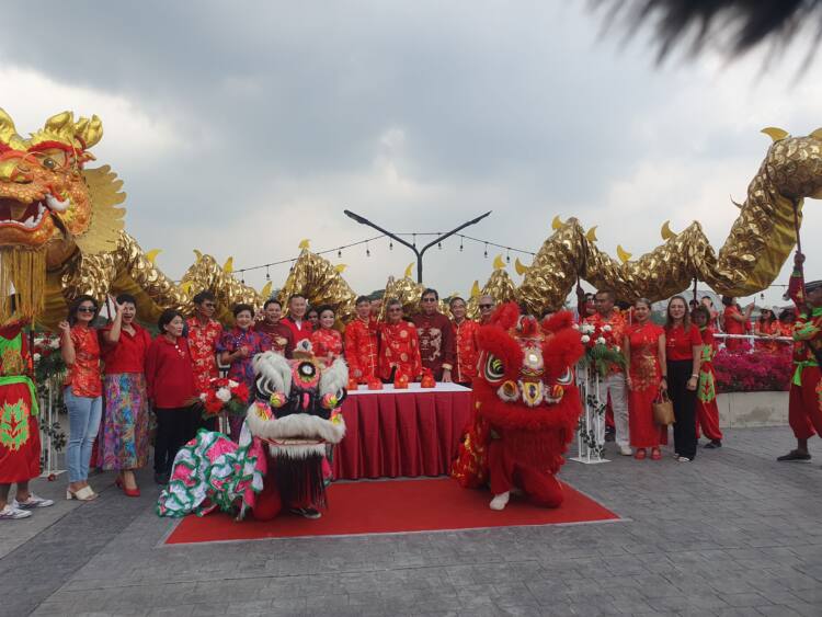 เมื่อวันที่ 10 ก.พ. 67 เวลา 07.30 น. นายคมสัน ญาณวัฒนา รองผู้ว่าราชการจังหวัดปทุมธานี เป็นประธานพิธีเปิดกิจกรรม “ตรุษจีน 2024 เชิดสิงโตกลางน้ำเจ้าพระยา” โดยมี นายปกรณ์พัฒน์ เทพเอื้อตระกูล นายกสมาคมส่งเสริมการค้าธุรกิจท่องเที่ยวปทุมธานี กล่าวรายงาน พร้อมกันนี้ยังมี พลตำรวจโท คำรณวิทย์ ธูปกระจ่าง นายกองค์การบริหารส่วนจังหวัดปทุมธานี นางวิพร แววศรีผ่อง นายอำเภอเมืองปทุมธานี ร.ต.อ. ดร.ตรีลุพธ์ ธูปกระจ่าง นายกเทศมนตรีนครรังสิต หัวหน้าส่วนราชการและชาวไทยเชื้อสายจีนในจังหวัดปทุมธานี ที่พร้อมใจกันแต่งกายชุดสีแดงเข้าร่วมงานกว่า 150 คน โดยกิจกรรมเริ่มด้วยการทำพิธีไหว้ศาลหลักเมืองจังหวัดปทุมธานี ด้วยส้มมงคลตามธรรมเนียมของคนไทยเชื้อสายจีน และเชิดสิงโต