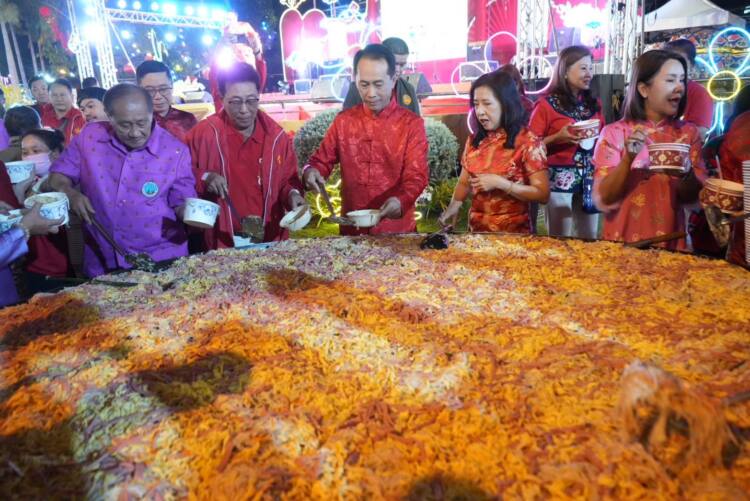ผวจ.สกลนคร ได้กล่าวอวยพร และสวัสดีปีใหม่ เนื่องในเทศกาลตรุษจีน ทั้งที่เป็นภาษาไทย “ซินเจียยู่อี่ ซินนี้ฮวดไช้” ในภาษาจีน และ “จุ๊ก หมึ่ง นัม เหมย” ภาษาเวียดนาม ที่หมายถึงการอวยพรให้ปีใหม่นี้สมหวังทุกประการ ร่ำรวยมั่งคั่ง พร้อมทั้งยังได้ร่วมกับ หัวหน้าส่วนราชการ ภาคเอกชน ผัดหมี่ซั่วแจกจ่ายให้กับผู้ที่มาร่วมงานด้วย