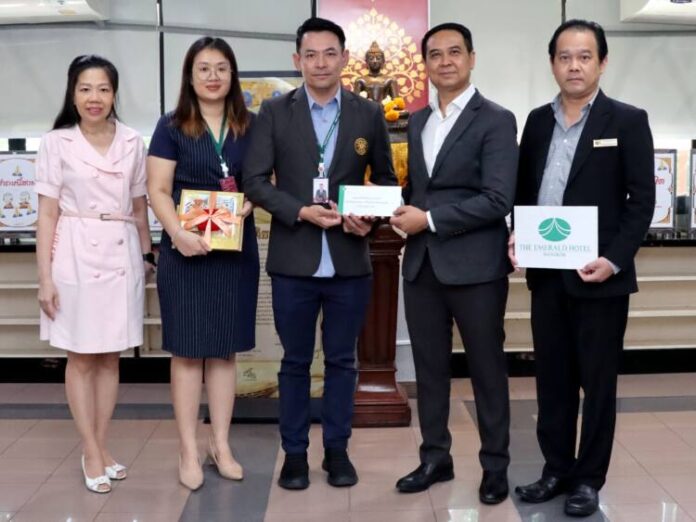 อัครเดช อนิวรรตวงศ์ รองผู้อำนวยการด้านอำนวยการ โรงพยาบาลสงฆ์ รับมอบเงินบริจาคจาก รานนท์ อาสาสนา รองผู้จัดการโรงแรม ดิ เอมเมอรัลด์ โดยมี ขวัญเรือน เหลียวตระกูล ผู้อำนวยการฝ่ายประชาสัมพันธ์ วชิรเดช รัตนไพศาล ผู้จัดการฝ่ายทรัพยากรบุคคล และ พรพิมล ทนทาน เลขารองผู้อำนวยการรพ.ฯ ร่วมเป็นสักขีพยาน เพื่อใช้ในกิ