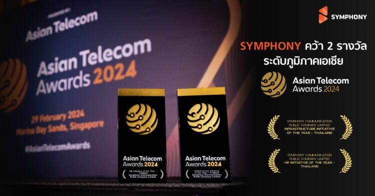 บริษัท ซิมโฟนี่ คอมมูนิเคชั่น จำกัด (มหาชน) หรือ SYMC ผู้ให้บริการโครงข่ายสื่อสารโทรคมนาคมทั้งในประเทศและระหว่างประเทศชั้นนำ ประกาศความสำเร็จคว้า 2 รางวัล จากเวที Asian Telecom Awards 2024 ประกอบด้วยรางวัล “Infrastructure Initiative of the Year” และ “HR Initiative of the Year” จัดโดยนิตยสาร Asian Business Review จากประเทศสิงคโปร์ ตอกย้ำความมุ่งมั่นในการส่งมอบบริการด้านโครงข่ายที่มีคุณภาพ หนุนพัฒนาอุตสาหกรรมโทรคมนาคมและเศรษฐกิจดิจิทัลในภูมิภาคให้แข็งแกร่ง