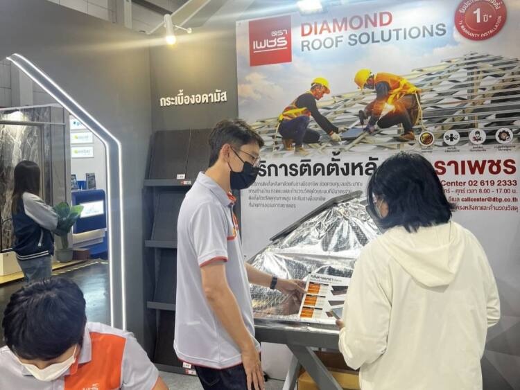 เมื่อเร็วๆ นี้ ‘สาธิต สุดบรรทัด’ และ ‘ดร.พิชญานันท์ ล้อวรลักษณ์’ ผู้บริหารจาก บมจ.ผลิตภัณฑ์ตราเพชร นำเสนอ Diamond Roof Solutions บริการติดตั้งระบบหลังคา พร้อมยกทัพสินค้าใหม่หลากหลาย ทั้งกระเบื้องคอนกรีต CT เพชร สีฟ้าอันดามัน พื้น SPC และไม้บันได SPC-FC เฉดสีใหม่ มาแนะนำ งานนี้ได้รับความสนใจจากลูกค้าหลากหลาย ทั้งกลุ่มลูกค้าเจ้าของบ้าน ช่างและผู้รับเหมา เพื่อดูสเปกสินค้าสำหรับการก่อสร้างและรีโนเวทที่อยู่อาศัย เพราะนอกจากนำเสนอบริการด้วยทีมงานมืออาชีพแล้ว ยังมีรับประกันการติดตั้ง 1 ปี เพื่อตอกย้ำความมั่นใจในผลิตภัณฑ์และบริการระดับมืออาชีพ
